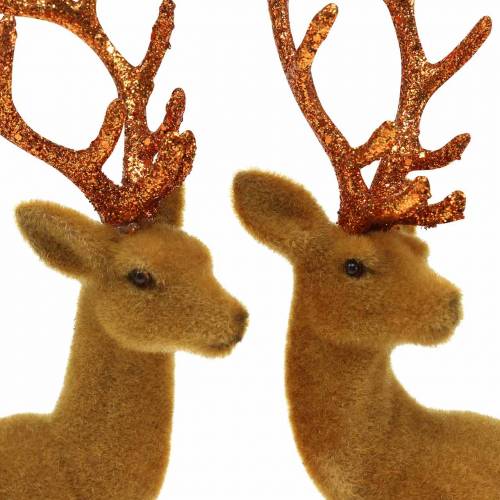 Le renne décoratif floqué au curry a une hauteur d'environ 20 centimètres et une largeur d'environ 15 centimètres. Vous recevez la paire triée dans un sac en plastique.