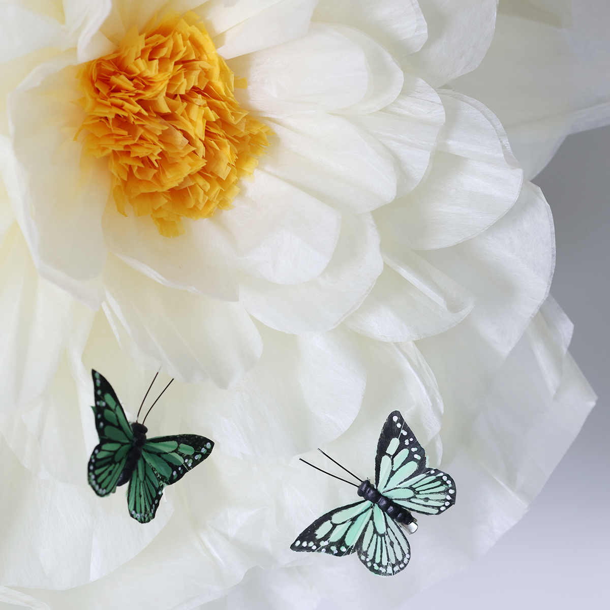 - Bringen Sie die Schmetterlinge mit feinen Drähten an Vorhängen oder Wänden an und schaffen Sie eine lebhafte Wanddekoration.