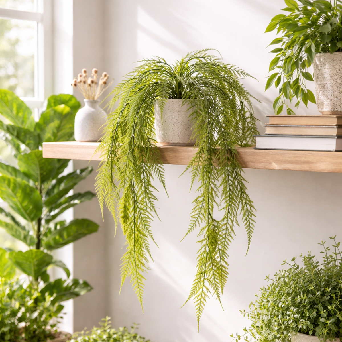 Koop kunstmatige hangplanten: de kunstmatige asperges als stijlvolle huisdecoratie.
