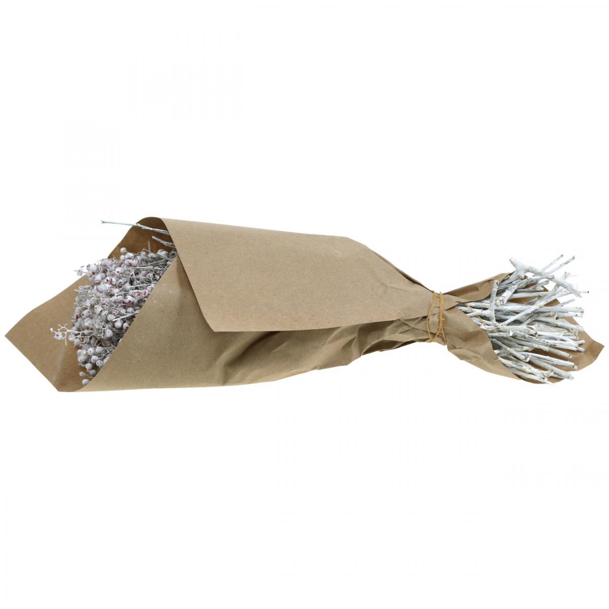 Nom du produit : Baies de poivre enneigé, décoration hivernale, fleurs séchées, Avent, poivre rose lavé blanc 170g