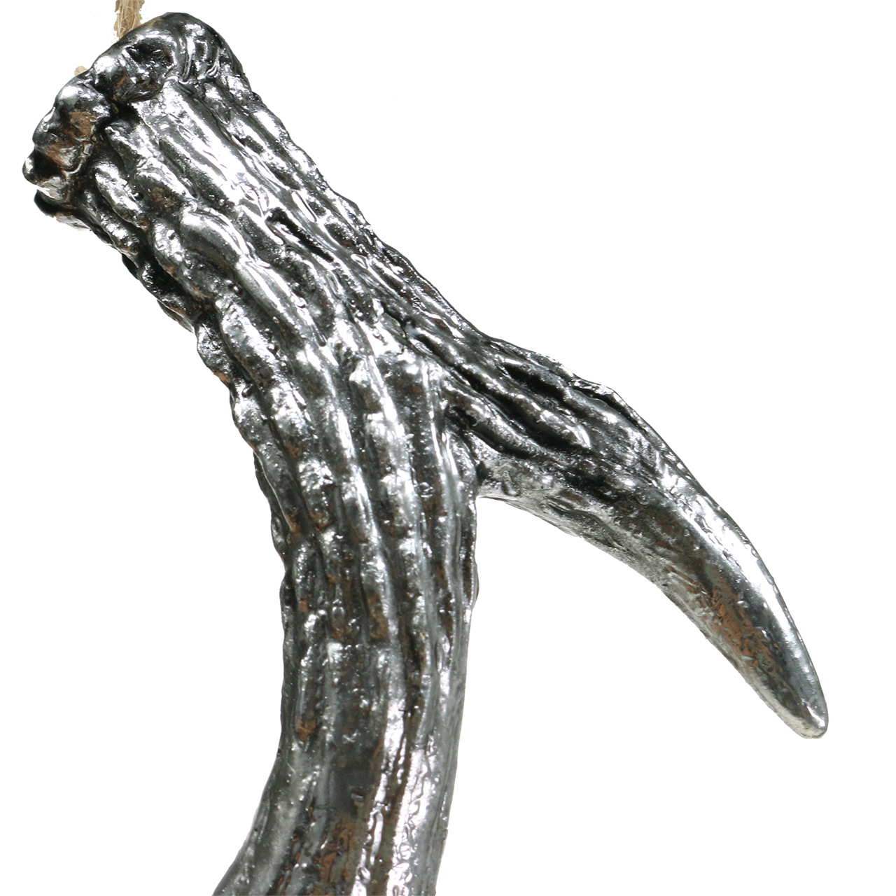 Dekogeweih Silber-Antik zum Hängen mit Jutekordel 4er-Set