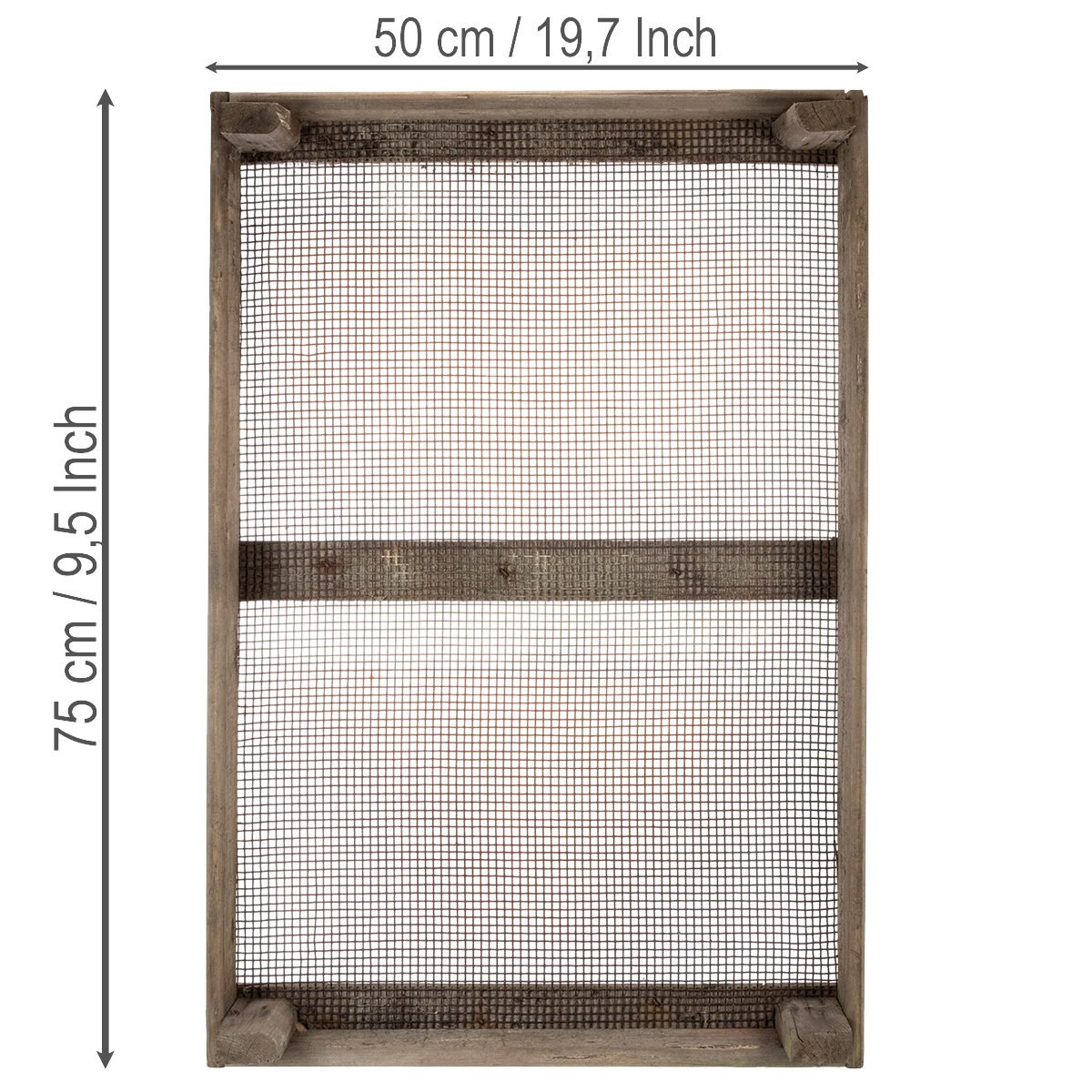 Vintage houten doos met draadgaas, landelijke stijl, uienzeef, decoratief, 75×50×14 cm