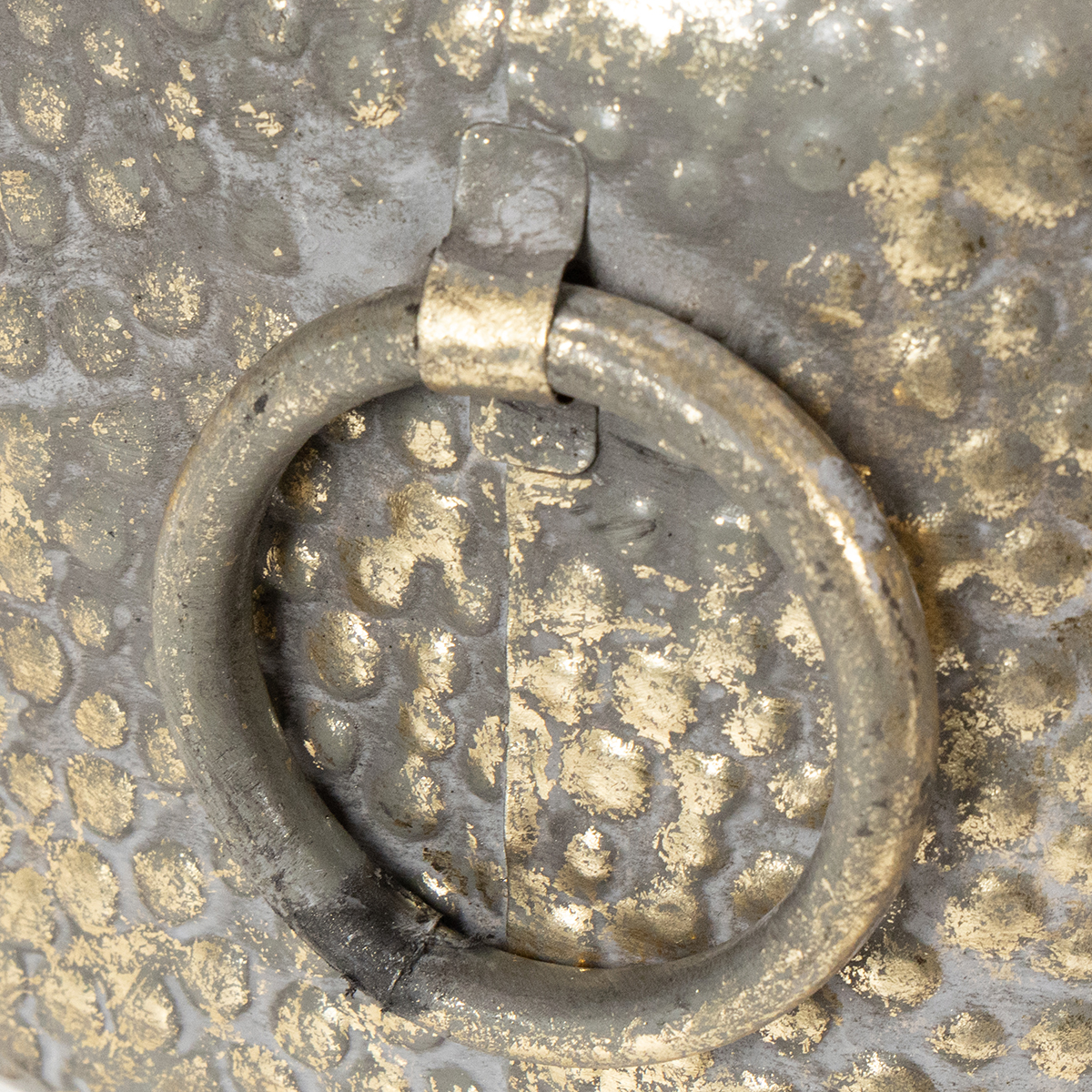 Le bol décoratif en métal d'aspect antique donne aux plantes et aux compositions une touche orientale, mais convient également comme décoration de pièce. Le cache-pot rond a l'air vraiment vieux grâce à la finition vintage, au motif à pois martelé et aux poignées rondes et mobiles. La couleur or fait ressembler la jardinière à une décoration en laiton noble. L'intérieur de la coque métallique est gris.