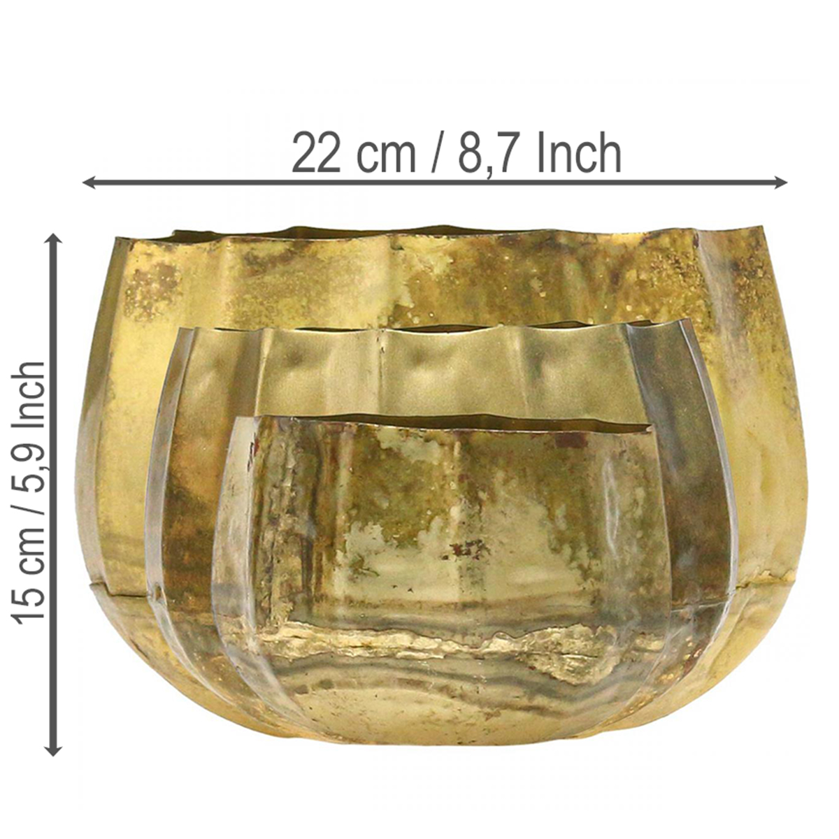Presenteer uw bloemstukken op een bijzonder elegante manier met de decoratieve schaal in messing. Je krijgt de koperen vaten als set met drie verschillende maten.