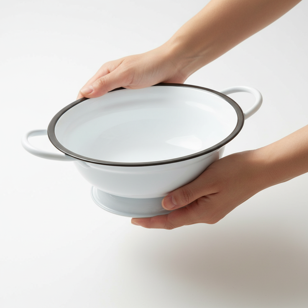 Weiße Metallschüssel in moderner Emaille-Optik für stilvolle Dekoration