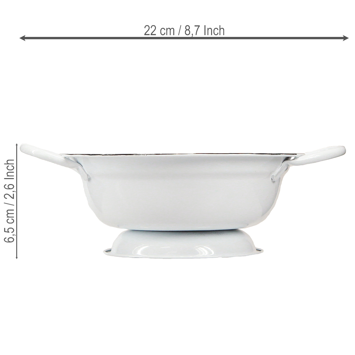- Material: Metall in weißer Emaille-Optik mit schwarzem Rand