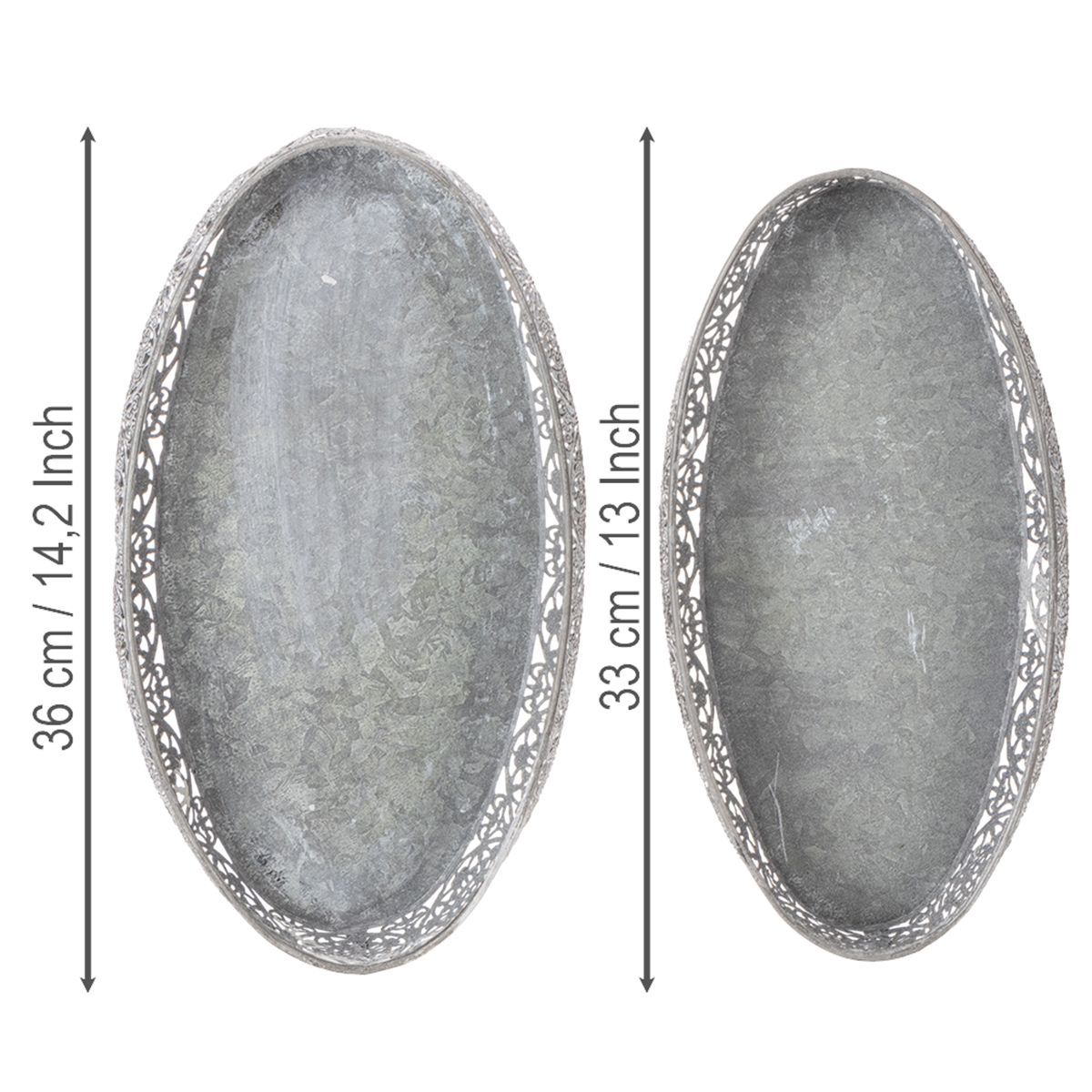 Dekoschale Metall Muster Grau Oval 2er-Set