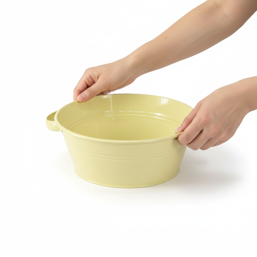 Diese runde Metallschale kombiniert ein elegantes retro-angelehntes Design mit hoher Funktionalität. Ideal für eine Landhaus- oder Shabby-Chic-Einrichtung, überzeugt sie durch ihre robuste Verarbeitung und die dezente grüngelbe Farbgebung.