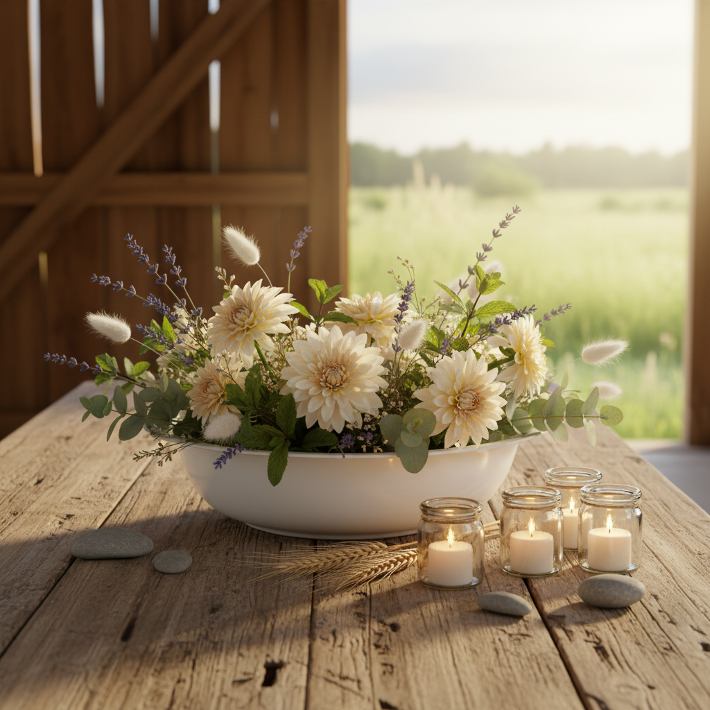 Le bol blanc s'impose comme base pour des décorations sèches au charme rustique. Le bol sert également de base à de nombreuses autres idées déco avec des fleurs séchées, du sable décoratif ou du gravier décoratif.