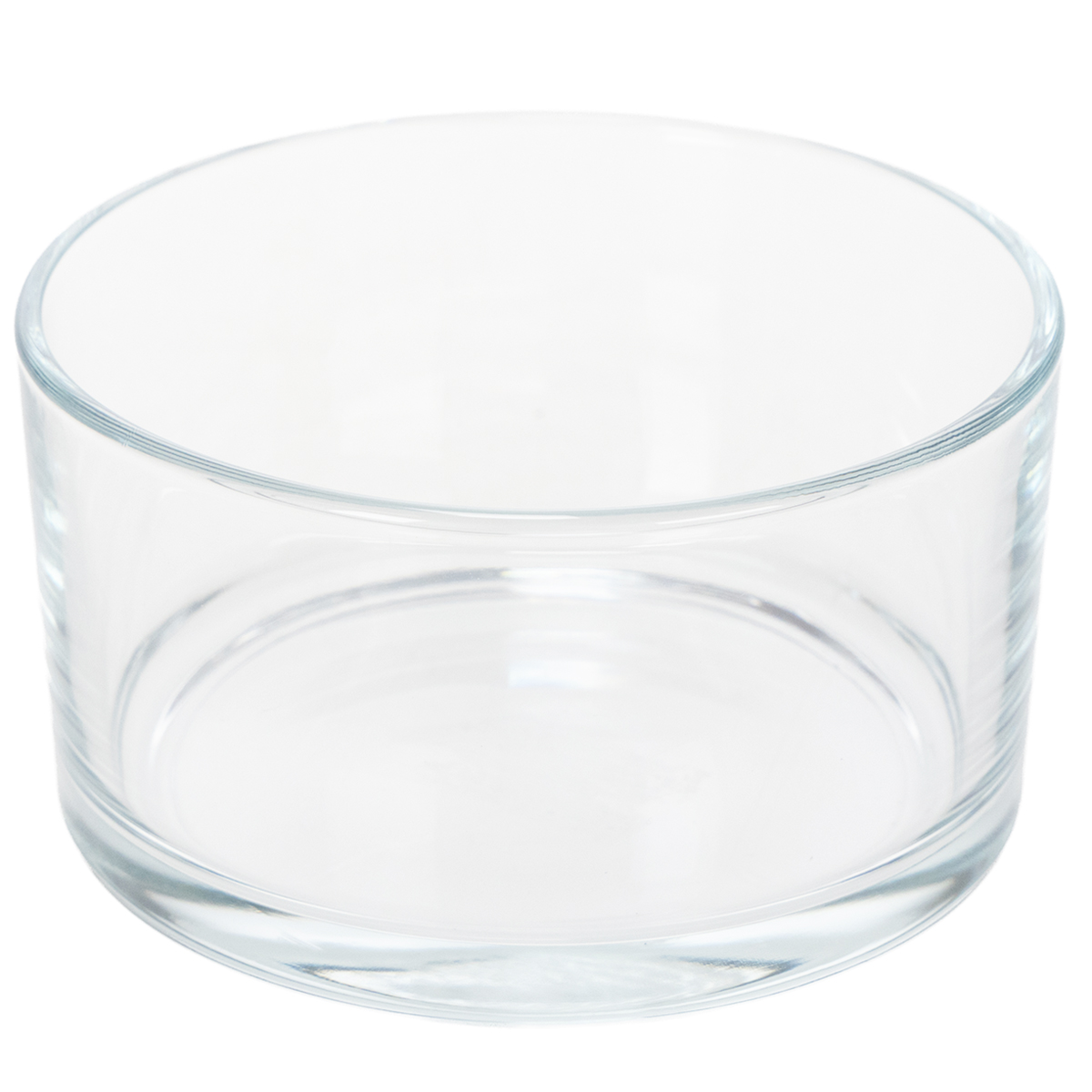 Die Schale aus klarem Glas ist ungefähr 7 Zentimeter hoch. Der Durchmesser beträgt in etwa 13 Zentimeter.