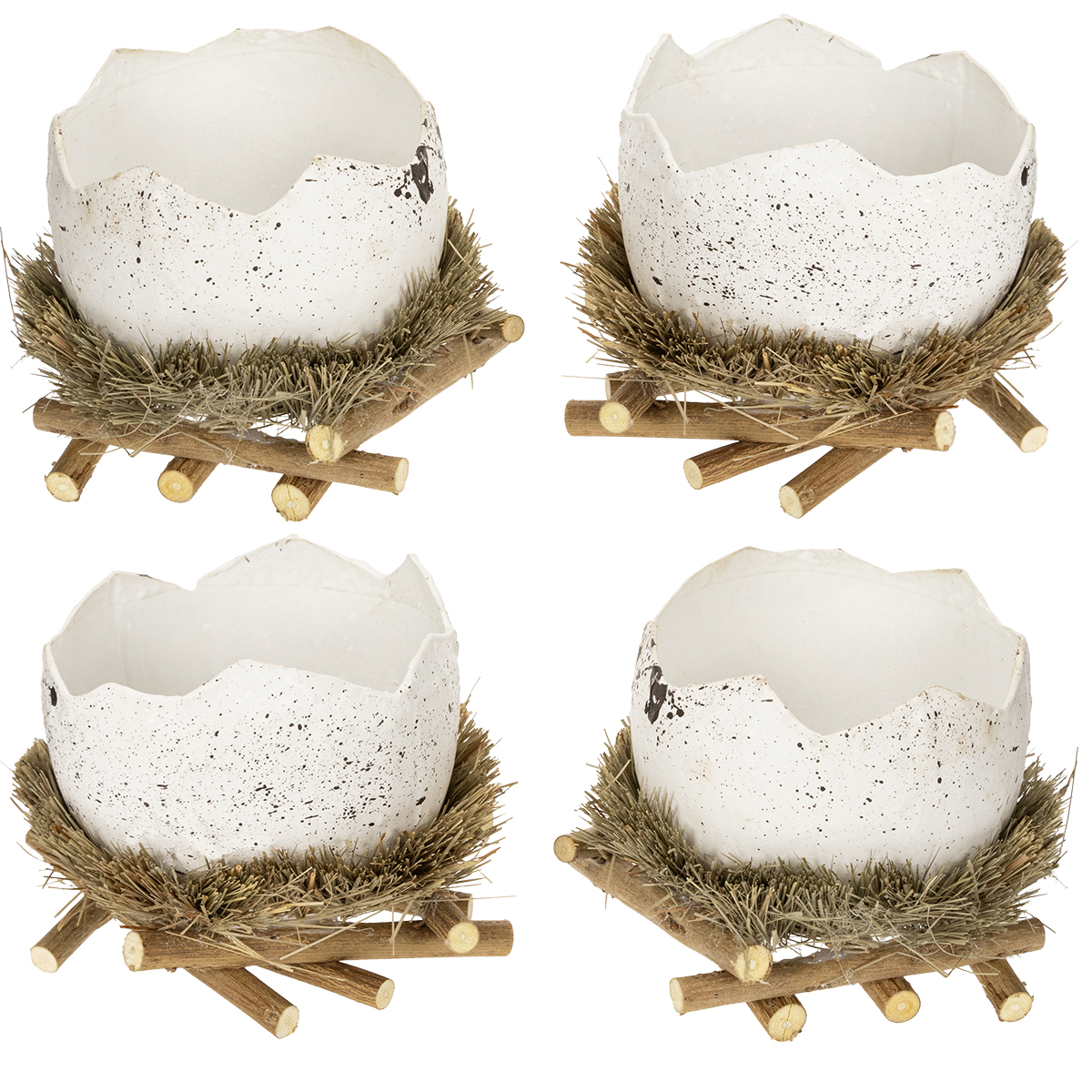 Nom du produit : Bol nid de Pâques en forme d'œuf pour décoration printanière, 11 cm, lot de 4
