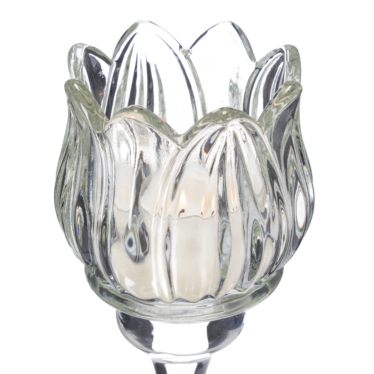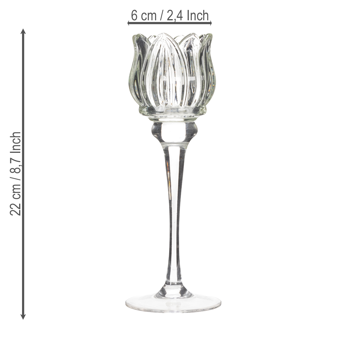 Kerzenhalter Glas Blume für elegantes Tischdeko Event und Hochzeit 22cm