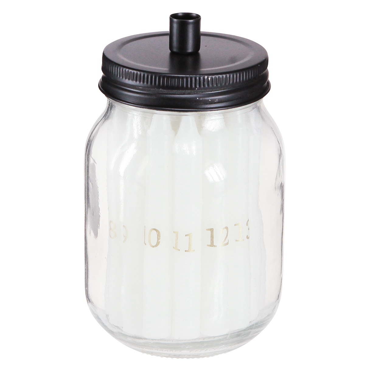 Kerzenhalter Glas Adventskalender mit 24 weißen Stabkerzen