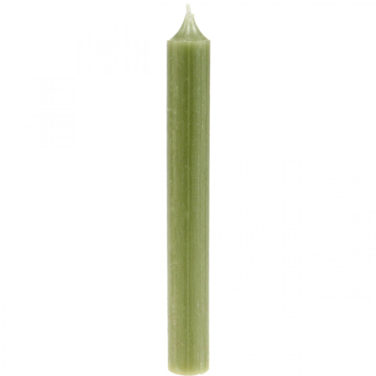 Stokkaars groen geverfde waskaarsen 180mm/Ø21mm 6st