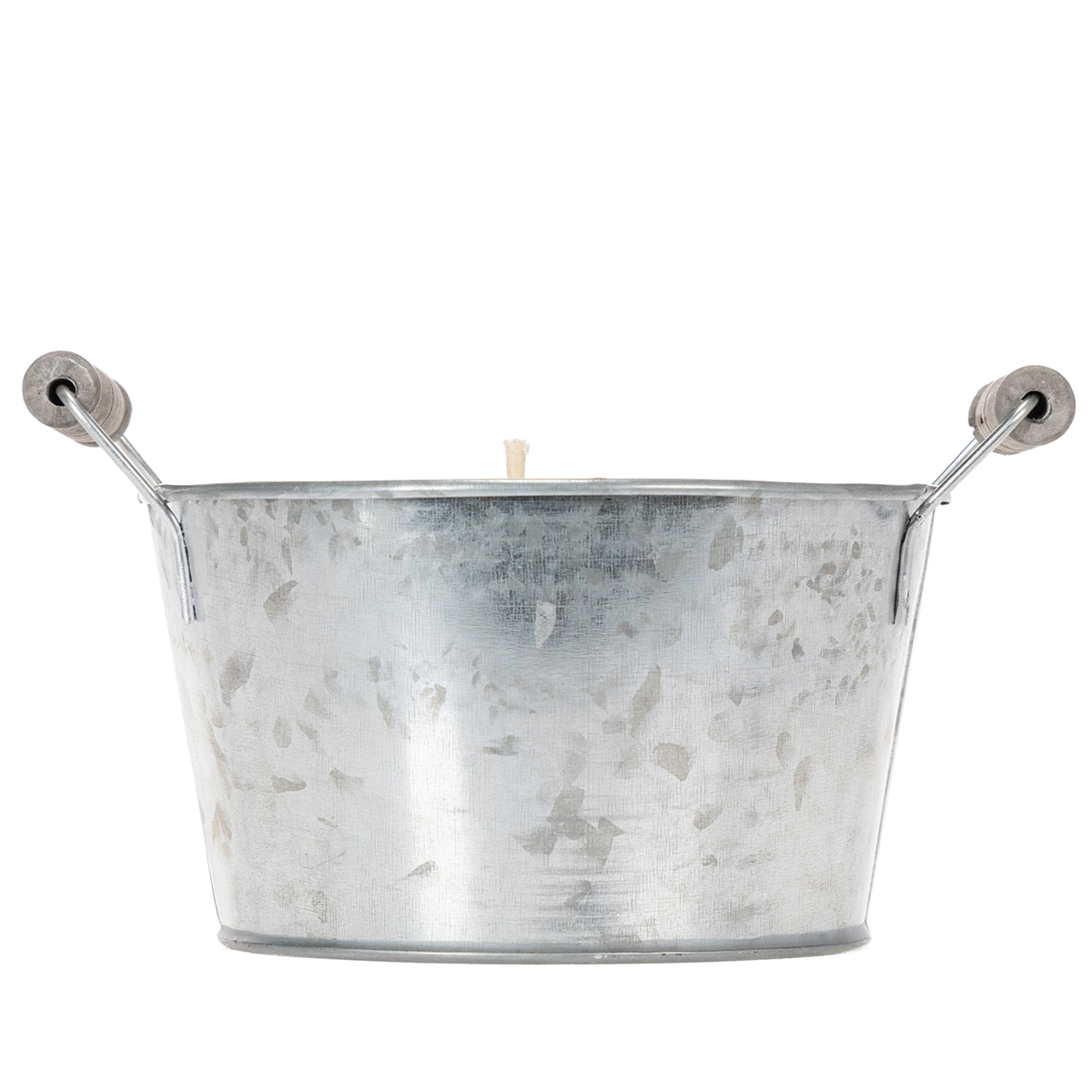 Bougie d'extérieur dans un seau en zinc – décoration d'ambiance pour terrasse et balcon