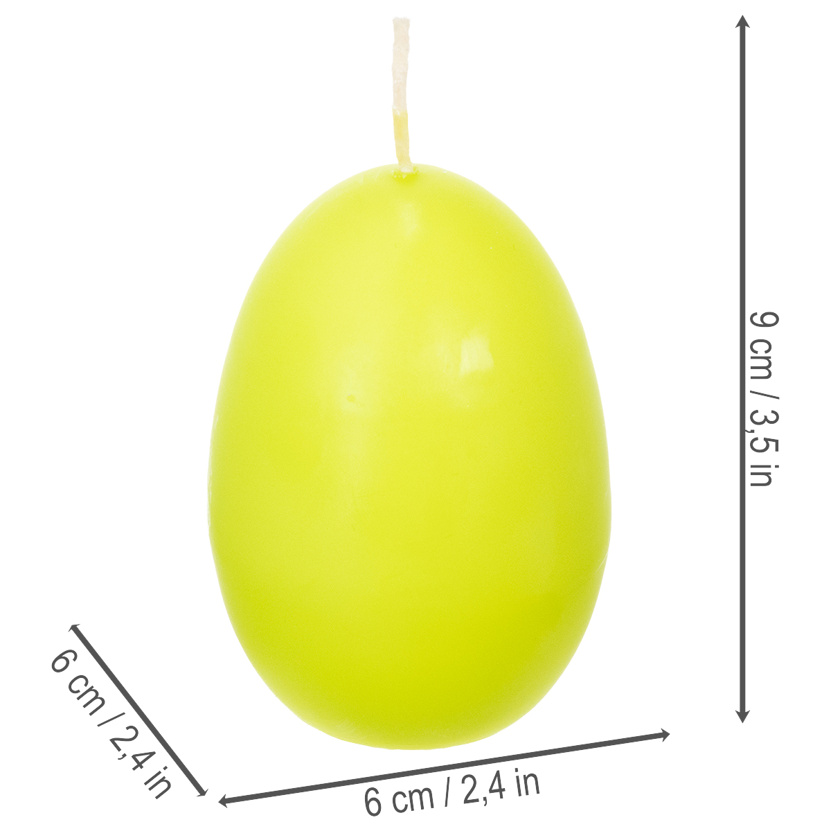 Nom du produit : Bougies de Pâques en forme d'œuf, vert citron, 9 cm, 20 cm de hauteur, lot de 6
