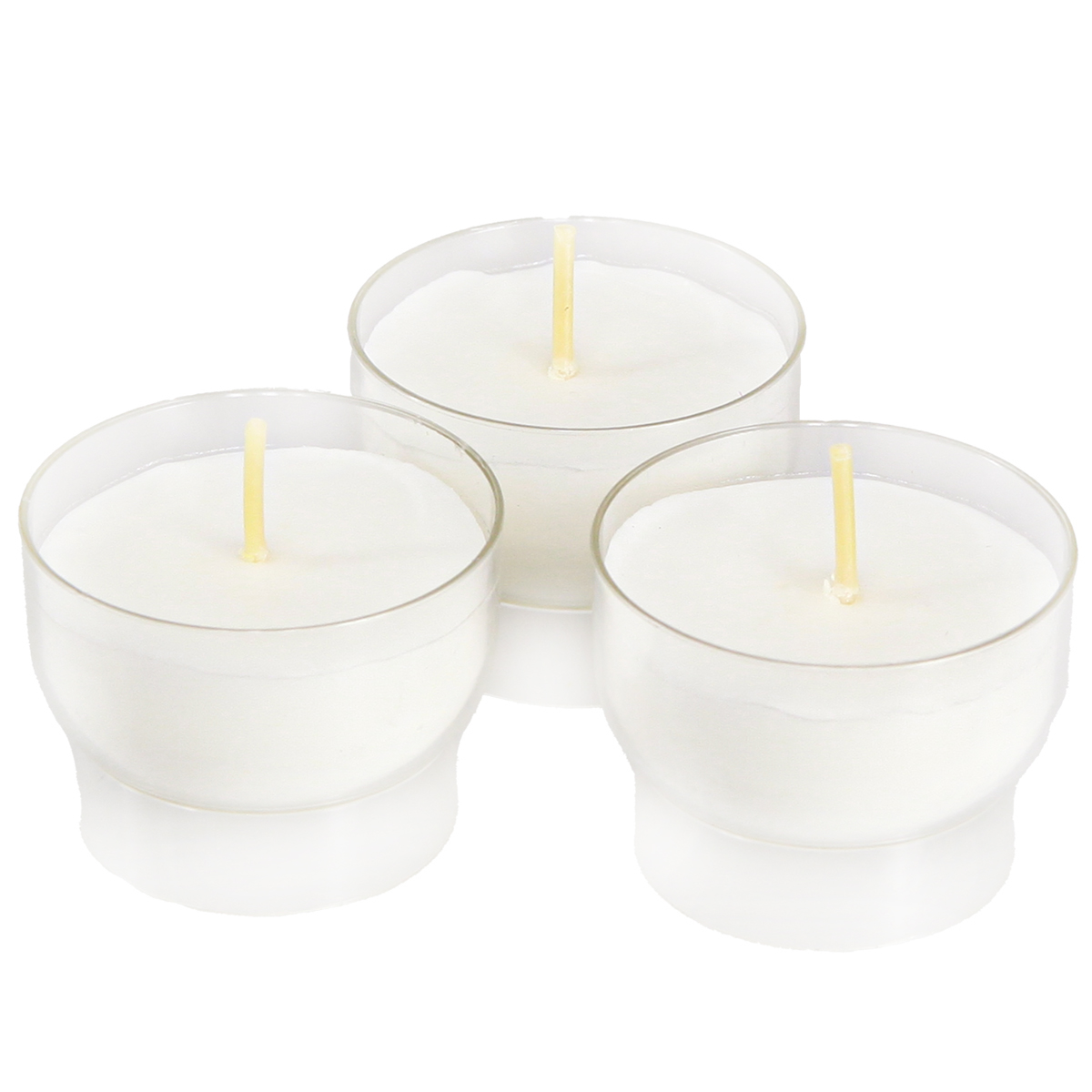 Chaque bougie votive mesure environ 4,3 cm de diamètre. Leur qualité et leur blanc pur en font le compagnon idéal des occasions festives.