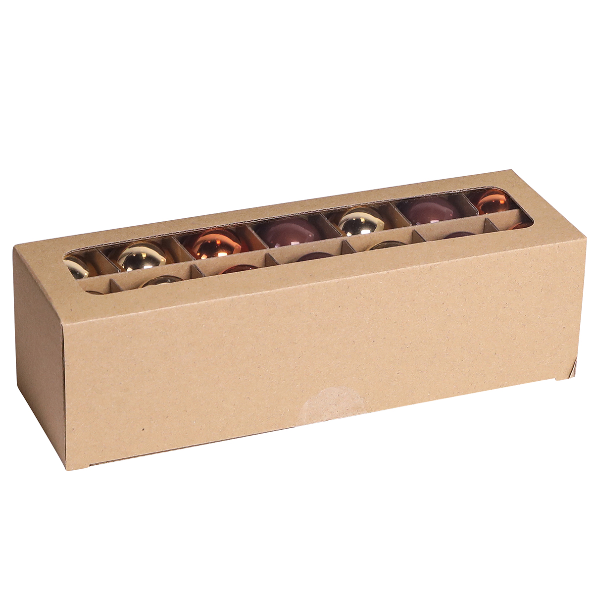 - Kleine kerstballen in goud, bruin en abrikoos