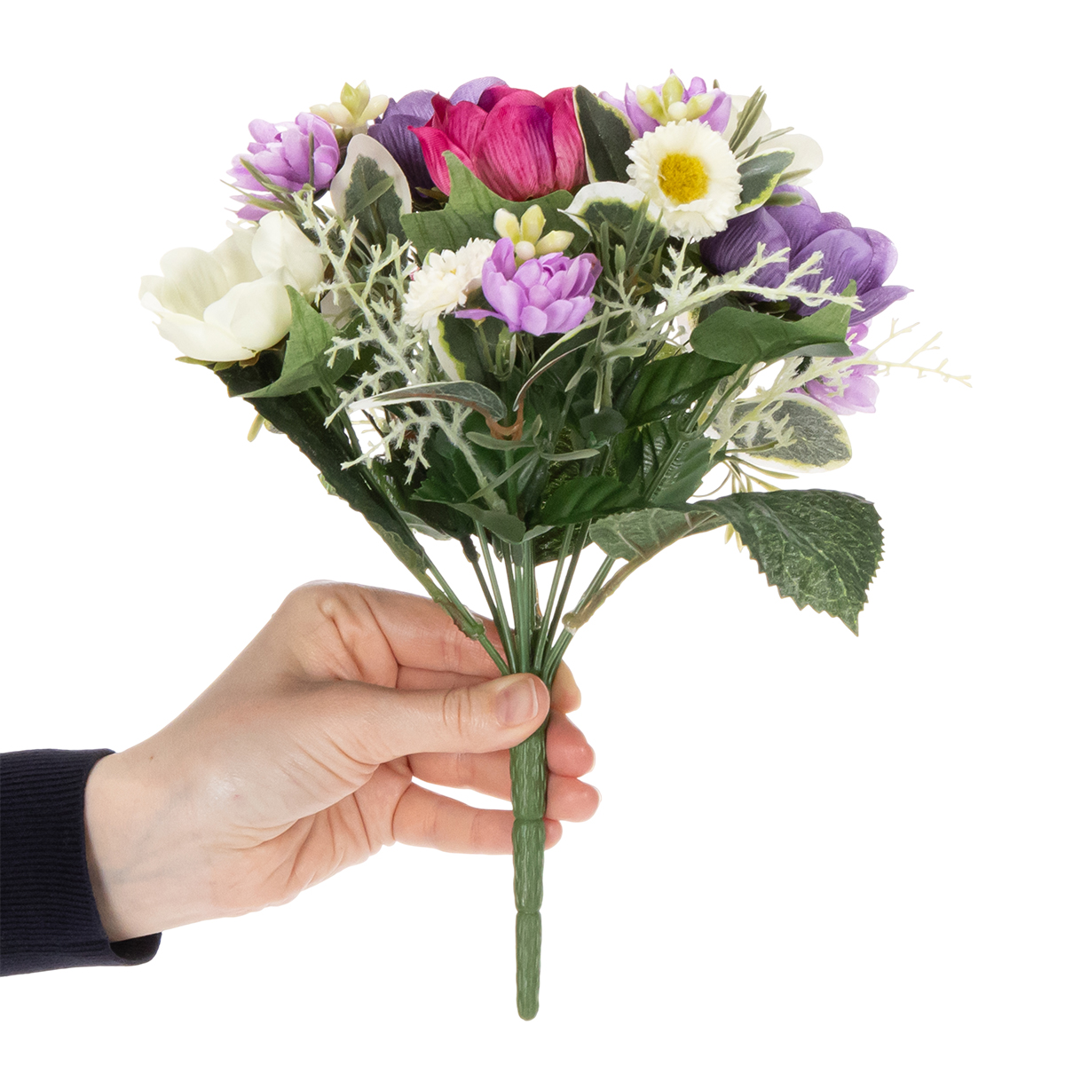 Een kunstbloemenboeket dat niet alleen decoratief is, maar ook langdurig plezier brengt. Dit model, gemaakt van polyester en kunststof, biedt een duurzaam alternatief voor echte bloemen en is ideaal voor iedereen die wil genieten van de vrolijke uitstraling van lentebloemen zonder steeds nieuwe boeketten te hoeven kopen. De levendige kleuren – van zacht wit tot stralend violet en felroze – maken van dit kleurrijke kunstbloemenboeket een echte blikvanger.