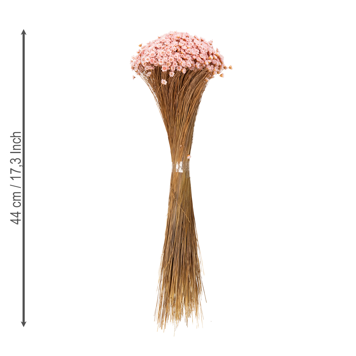 Mit seinen natürlichen, hochwertigen Gräsern und den zarten rosa Blüten der Glixia bringt dieser Deko-Blütenbund pure Frühlingsfreude in Ihr Zuhause. Die bewusst dezente Farbgestaltung in Rosa und Natur verleiht ihm eine schlichte Eleganz, die sich vielseitig einsetzen lässt. Die Länge von 44 cm macht ihn zum idealen Mittelpunkt auf Ihrem Ostertisch oder als Teil eines DIY-Gestecks. Besonders geeignet ist der Blütenbund, um ihn mit größeren Gräsersträußen oder weiteren Frühlingsblumen zu kombinieren. Die zarten Blüten harmonieren wunderbar mit frischen Farben wie Gelb oder Weiß und setzen in minimalistischen Arrangements wunderschöne Akzente.