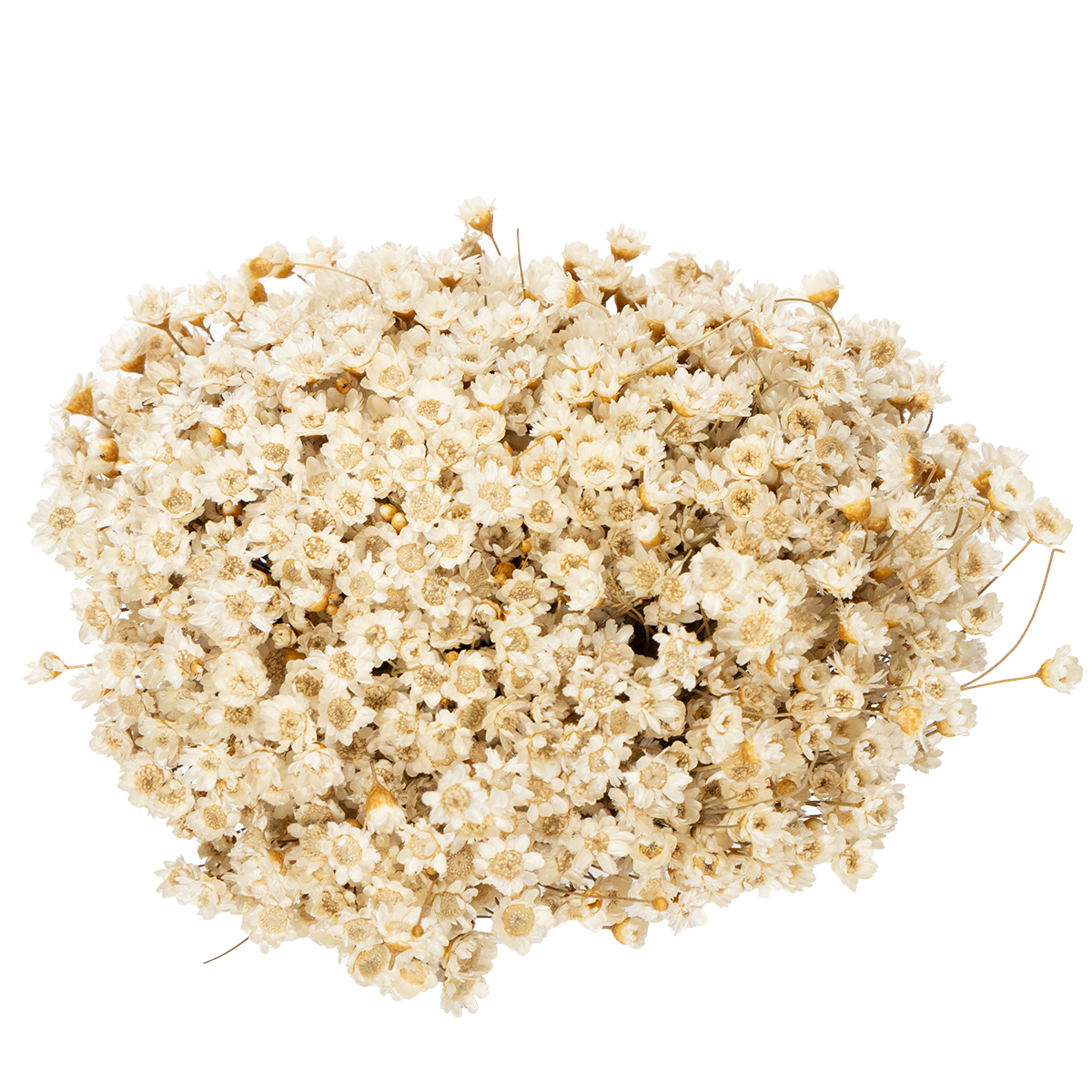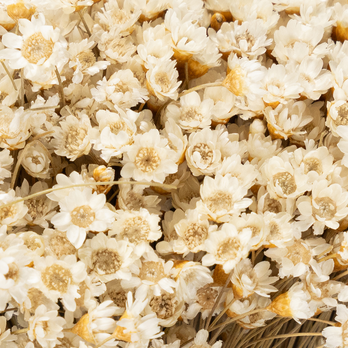 In de taal van de bloemen staan gedroogde bloemen voor duurzaamheid en bestendigheid – waarden die steeds belangrijker worden in modern interieurontwerp. De delicate witte bloesems symboliseren puurheid, rust en een vleugje eeuwigheid. Hun natuurlijke kleur zorgt voor een bijzonder kalmerend en harmonieus effect.