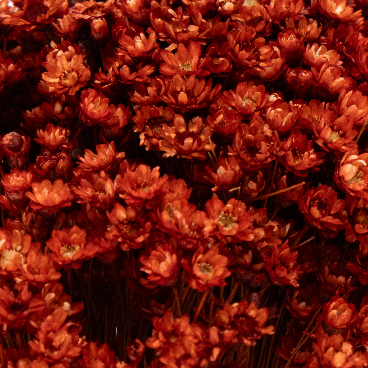 Dit boeket gedroogde bloemen is een harmonieuze combinatie van glyxia-bloesems en zacht glinsterende grassen. Met zijn aangename rode en natuurlijke kleurenpalet brengt het warmte en textuur in elke ruimte. Of het nu op een dressoir in de hal, een plank in de woonkamer of als middelpunt op de eettafel staat, dit arrangement maakt subtiel indruk. De lange houdbaarheid is bijzonder opmerkelijk: eenmaal geplaatst, blijft dit boeket maandenlang prachtig en fris. Wie graag creatief bezig is, kan het ook gebruiken voor verfijnde doe-het-zelfprojecten, zoals artistieke arrangementen met gedroogde bloemen. Combineer het met andere natuurlijke decoratieve elementen zoals houten of keramische vazen voor een harmonieuze uitstraling. Dit boeket geeft ook een speciaal tintje aan feestelijke gelegenheden zoals bruiloften of verjaardagsfeesten. Gewoonweg prachtig – perfect voor wie natuurlijke elegantie waardeert.