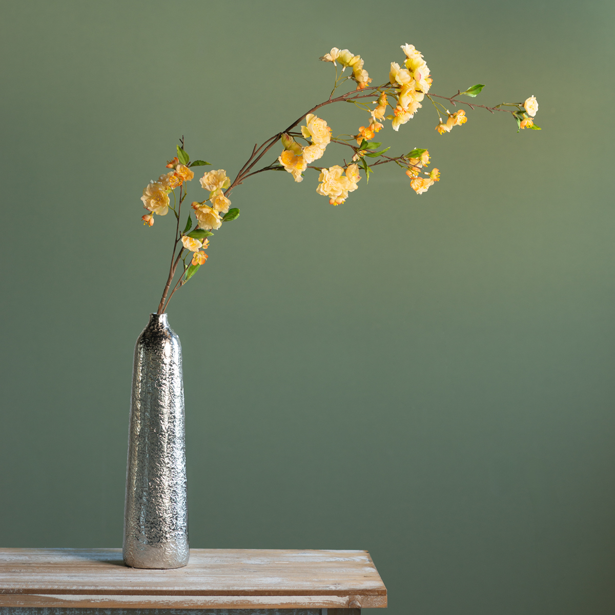 Associée à des matériaux naturels comme le bois ou la céramique, la branche de cerisier en fleurs crée une ambiance harmonieuse, que ce soit dans un style champêtre ou un design japonais moderne. Même une simple branche dans un vase en verre apporte une touche de fraîcheur et de gaieté. Pour les mariages et autres événements, la branche de cerisier en fleurs est un excellent choix : elle ajoute une note romantique sans surcharger la décoration. Ses fleurs jaunes symbolisent la joie et l’optimisme, ce qui en fait un choix idéal pour les occasions spéciales.