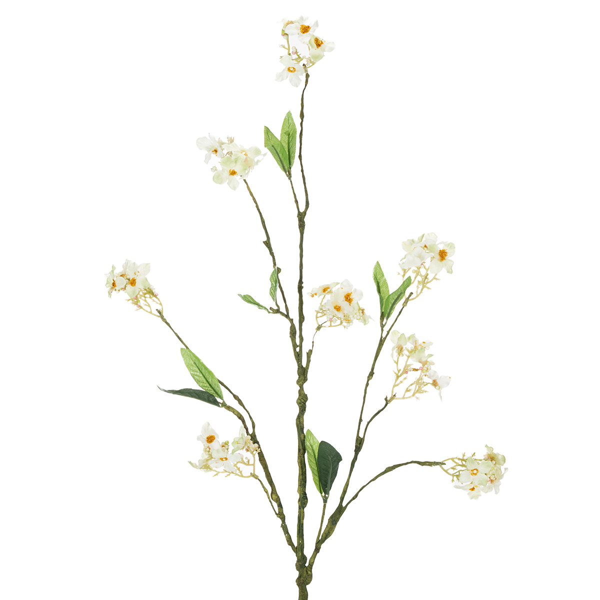 Ce printemps, égayez vos vases avec cette branche de fleurs artificielles blanches ! Cette branche décorative est inspirée d'une branche de pommier, aussi appelée « malus » en latin. Ses petites fleurs blanc-jaune et ses feuilles vertes lui confèrent un aspect printanier et vibrant, qui sublimera n'importe quelle pièce. Par exemple, vous pouvez placer cette branche ornée de fleurs artificielles chics dans un élégant vase de table pour égayer votre salle à manger.