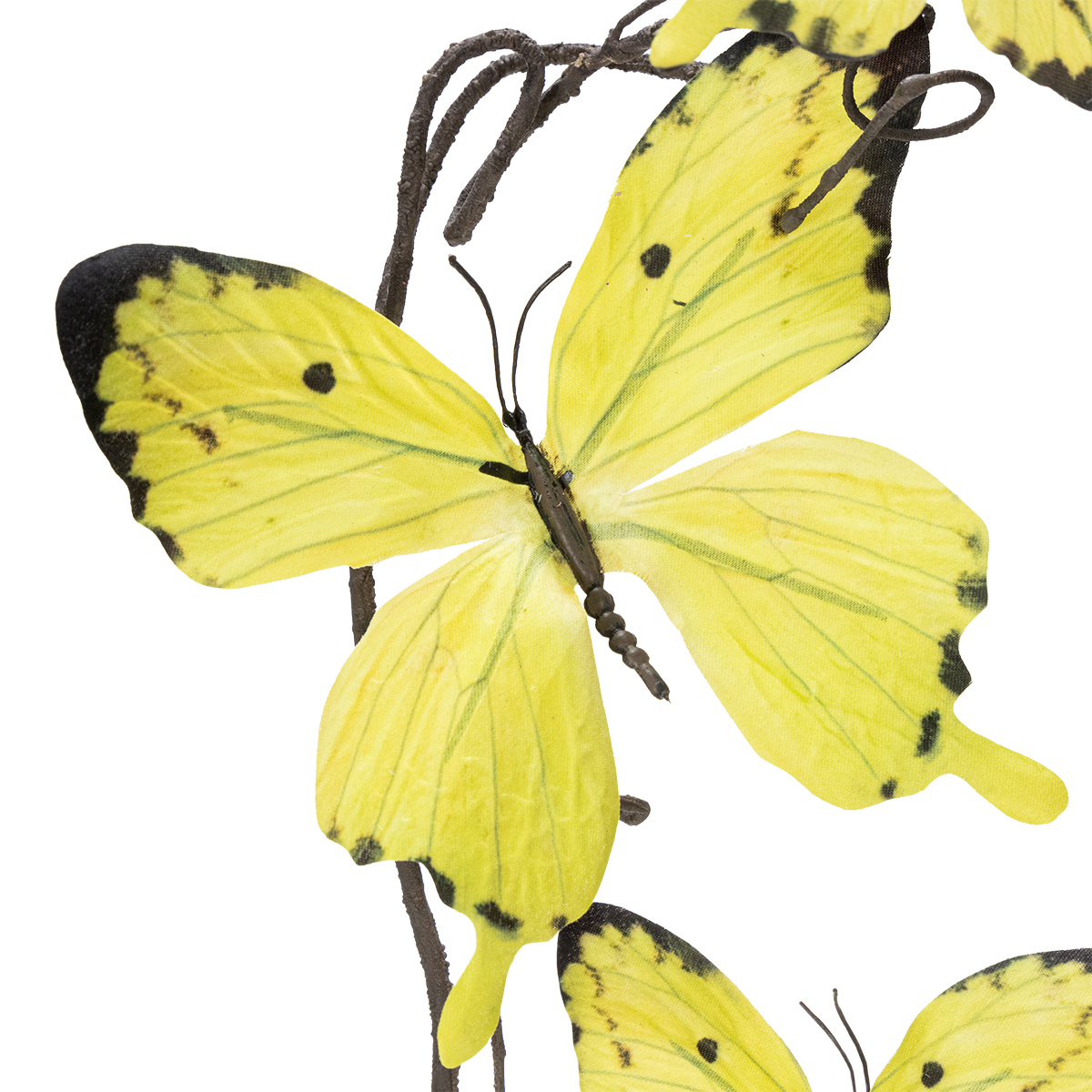 Les papillons symbolisent la transformation, la légèreté et les nouveaux départs – des valeurs que le printemps incarne à merveille. Le jaune, couleur de la nature, évoque la joie, l'optimisme et la lumière, tout en stimulant la créativité. Cette combinaison fait de notre branche de papillon un choix idéal pour insuffler à vos espaces une énergie positive et une touche de fraîcheur.