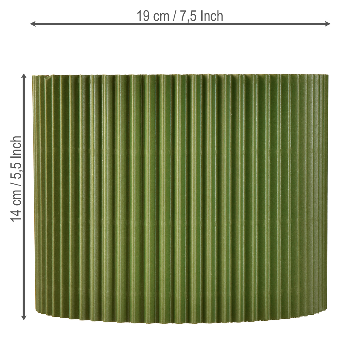 Der elegante Übertopf in Dunkelgrün aus Papier setzt dekorative Akzente in jedem Raum. Mit einem Durchmesser von etwa 19 cm und einer Höhe von circa 14 cm ist dieser Blumentopf optimal für mittelgroße Pflanzenarrangements geeignet. Das moderne Design mit gerippter Außenseite verleiht ihm eine interessante Textur. Somit ist der Topf ideal für Wohnzimmer, Büros oder als kreatives Geschenk. Bitte beachten Sie, dass der Übertopf vor der Nutzung mit lebenden Pflanzen mit Folie ausgekleidet werden sollte, um ihn vor Feuchtigkeit zu schützen. Der Blumentopf eignet sich perfekt für dekorative Pflanzenarrangements zu Hause oder für floristische Präsentationen und Schaufenster.