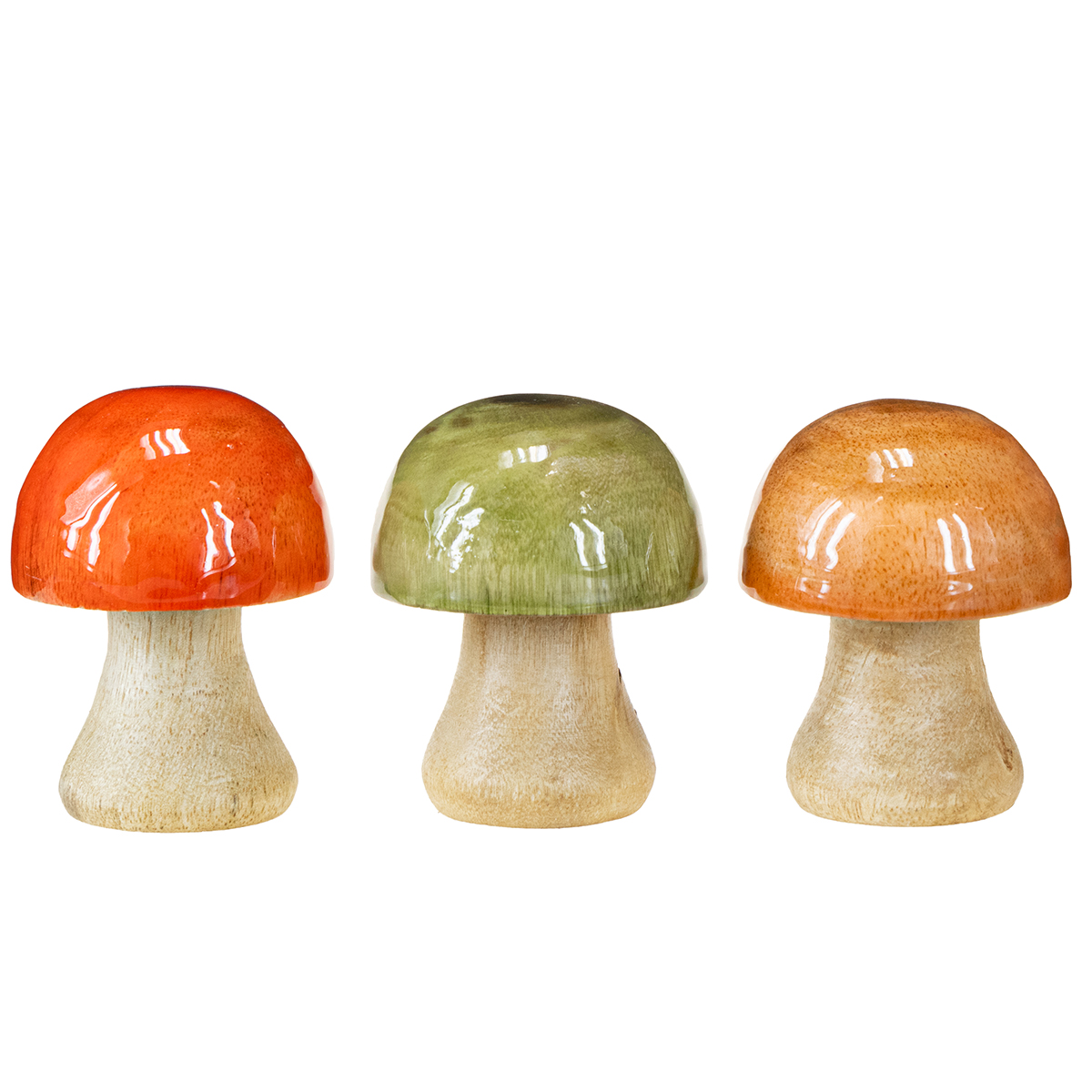 Vous êtes-vous déjà demandé comment donner à votre salon ou à votre table à manger un charme automnal ? Parfois, une petite décoration soigneusement choisie suffit à créer une atmosphère chaleureuse et réconfortante. Nos champignons en bois, déclinés en vert, rouge et orange, vous offrent cette sensation automnale à l'état pur ! Avec leur taille pratique de 6,5 cm et leur structure en bois robuste, ils s'intègrent parfaitement à toutes les compositions et apportent une touche rustique et champêtre. Que ce soit en décoration de table, sur le rebord de la fenêtre ou dans une couronne automnale, ces figurines en bois sont si polyvalentes qu'elles deviendront assurément la pièce maîtresse de votre décoration.