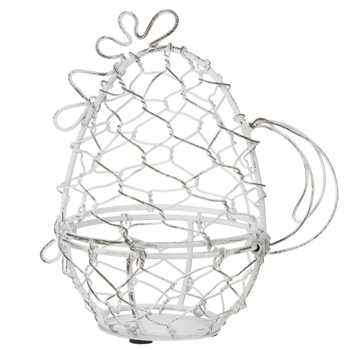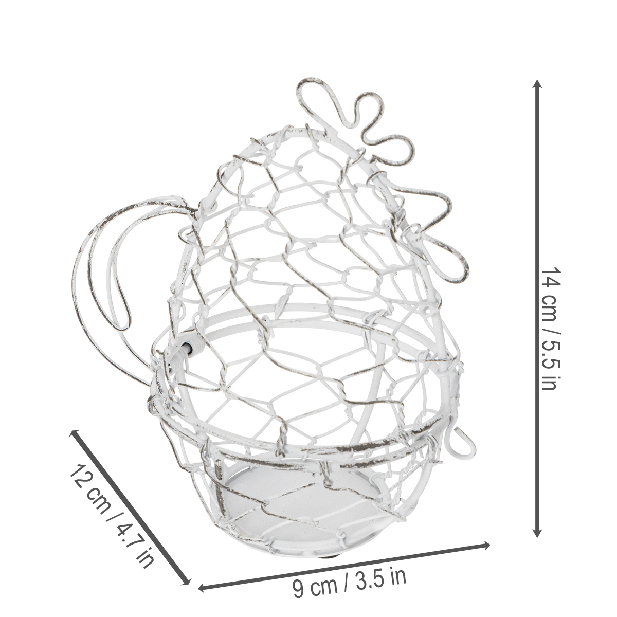 Ce panier en fil de fer en forme de poule est non seulement esthétique, mais aussi très pratique. Mesurant 14 cm de haut et 12 cm de diamètre, il est idéal pour vos œufs de Pâques. Sa structure robuste en métal blanc accentue son charme rustique et élégant, alliant sobriété et authenticité. Son design intemporel s'harmonise avec différents styles d'intérieur, du style champêtre au style vintage en passant par le style moderne.