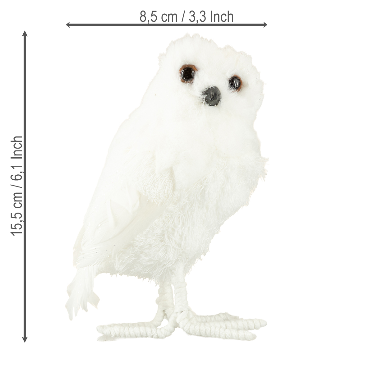 Schneeeule Deko Eule Weiß mit Fell und Federn 15,5cm 2St