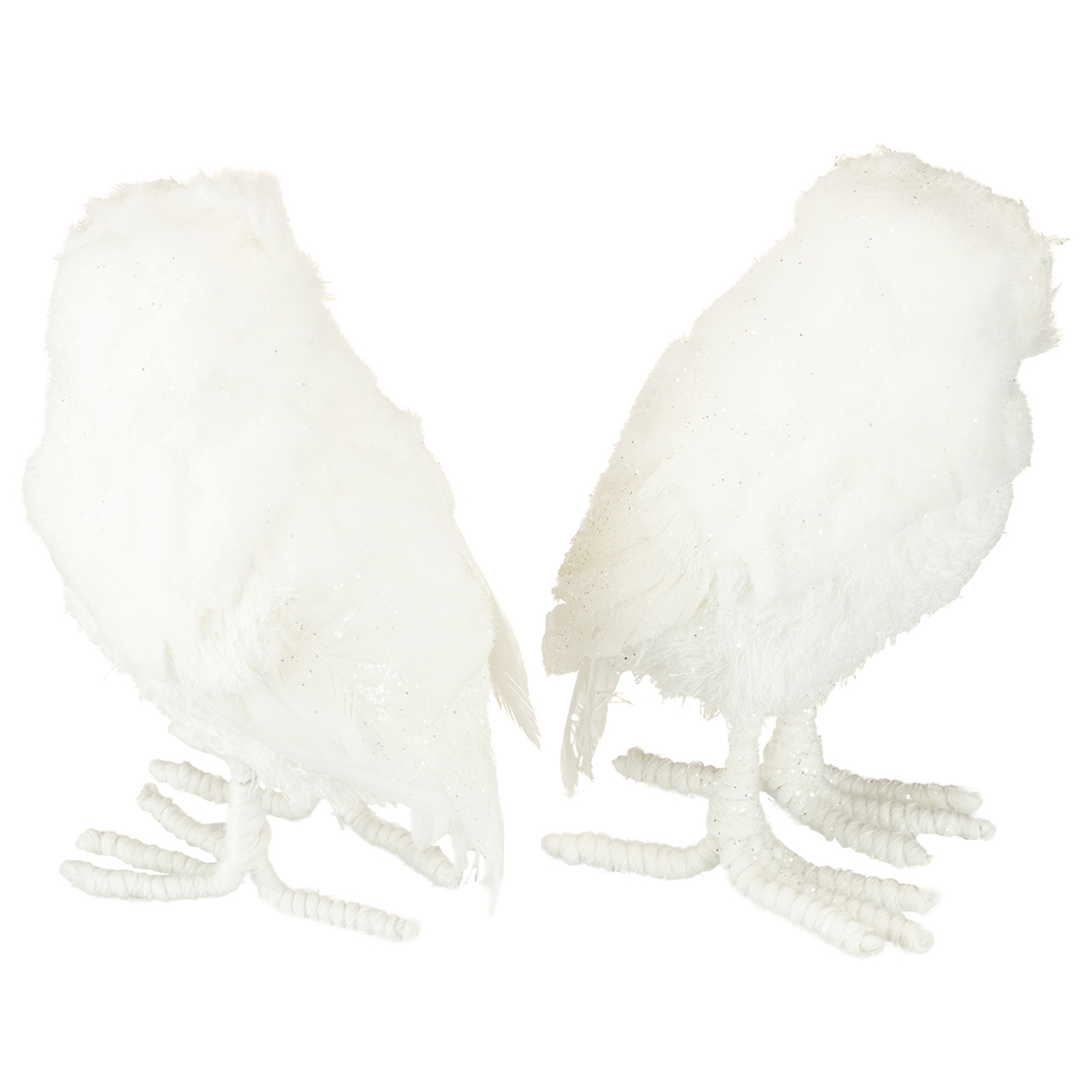 Chouette des neiges décorative blanche avec fourrure et plumes 15,5 cm 2 pièces