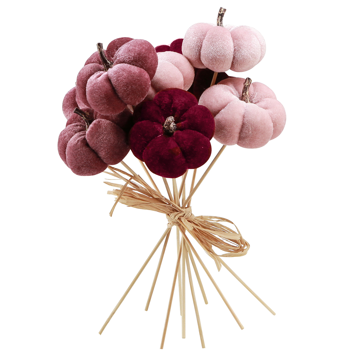 Citrouille décorative en tissu citrouille sur bâton rose bordeaux Ø7cm 9 pcs