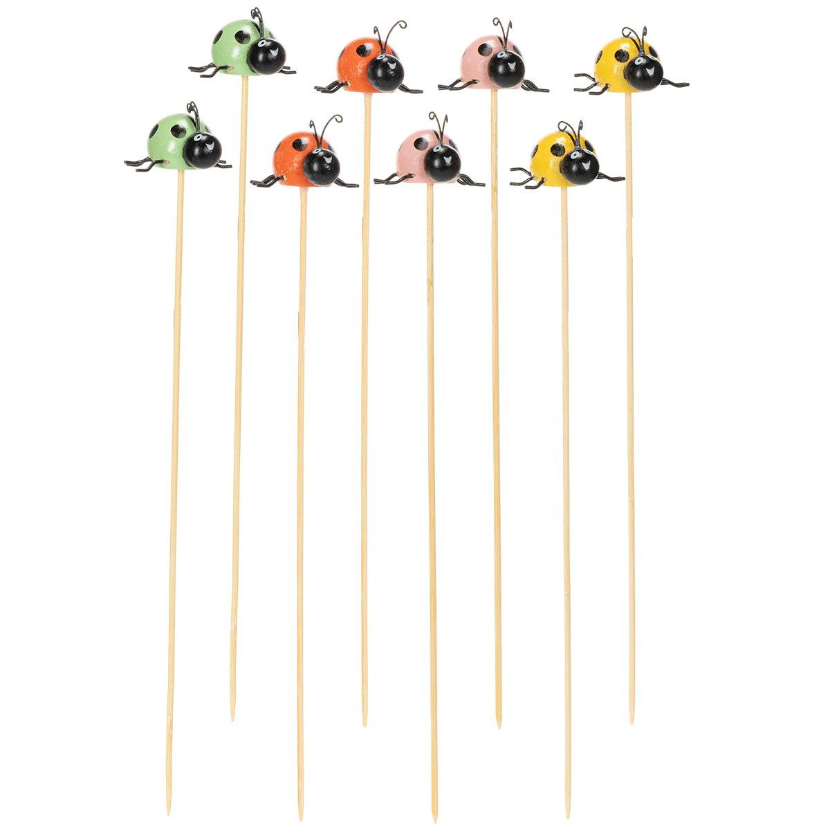 Deze lieveheersbeestjesfiguurtjes zijn een echte blikvanger in elk bloemstuk! Gemaakt van stevig metaal en voorzien van handige houten stokjes, kunnen de figuurtjes gemakkelijk in aarde, mos of schuim worden gestoken. Het materiaal is robuust, waardoor de decoratie lang plezier zal geven, zelfs bij veelvuldig gebruik. De lieveheersbeestjes zijn prachtig gedetailleerd. Van hun charmante zwart-witte ogen tot hun kleurrijke lijfjes, ze brengen een levendige frisheid in uw zomerdecoratie! De kleuren vormen een harmonieus contrast met groene planten en passen perfect bij kleurrijke lentebloemen.