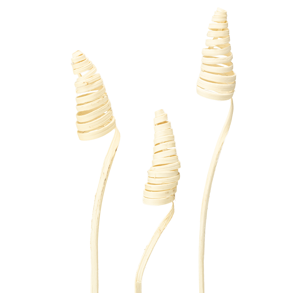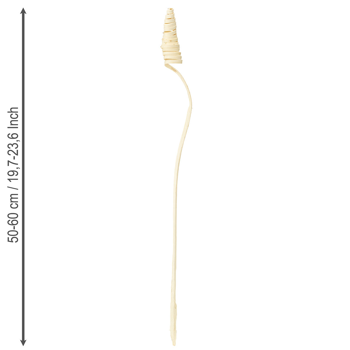 Nos spirales en bois appelées Cane Cone ont été blanchies et vous sont proposées en lot de 25 pièces. Comme il s’agit de produits naturels, ils ne sont pas identiques en tous points et leur longueur peut donc osciller entre 50 et 60 centimètres.