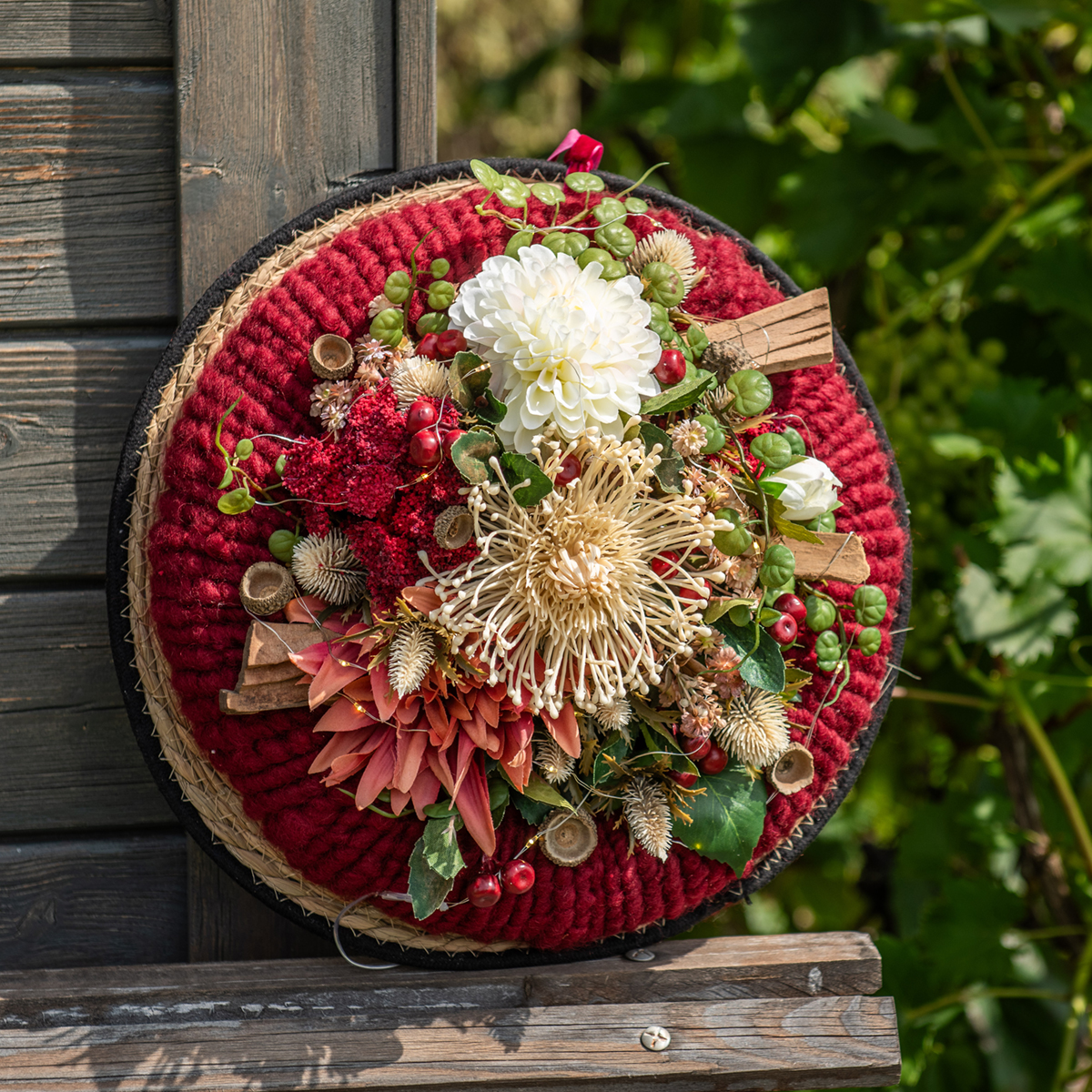 Nutzen Sie diese Filzkordel „Flausch Mirabell“ in Dunkelrot für eine Vielzahl an Dekorationen und verfeinern Sie damit Ihre Werke! Die lange Kordel besteht aus echter Schafwolle sowie Jute und ist damit ein sehr hochwertiges Naturprodukt, das sehr strapazierfähig und flexibel zugleich ist. Sie können mit der Wollkordel zum Beispiel den Rand eines Blumentopfes und einer Schale oder auch einen Bilderrahmen verzieren. Richtig schön sieht auch ein Adventskranz aus, der mit dieser Filzwolle umwickelt ist.So können Sie auch einen Fensterschmuck oder gar einen Weihnachtsbaum damit behängen und für eine feierliche Atmosphäre sorgen. Probieren Sie auch, einen Türrahmen oder einen Teil einer Wand mit der Filzkordel zu schmücken und daran dann mit einer Nadel, Klammer oder etwas Draht kleinen Schmuckstücke wie Zapfen, Weihnachtsfiguren und etwas Tannengrün zu befestigen. Selbstverständlich können Sie aus dem Filzband auch ein Herz formen und dieses für den Muttertag oder den Valentinstag als Schmuck verwenden.