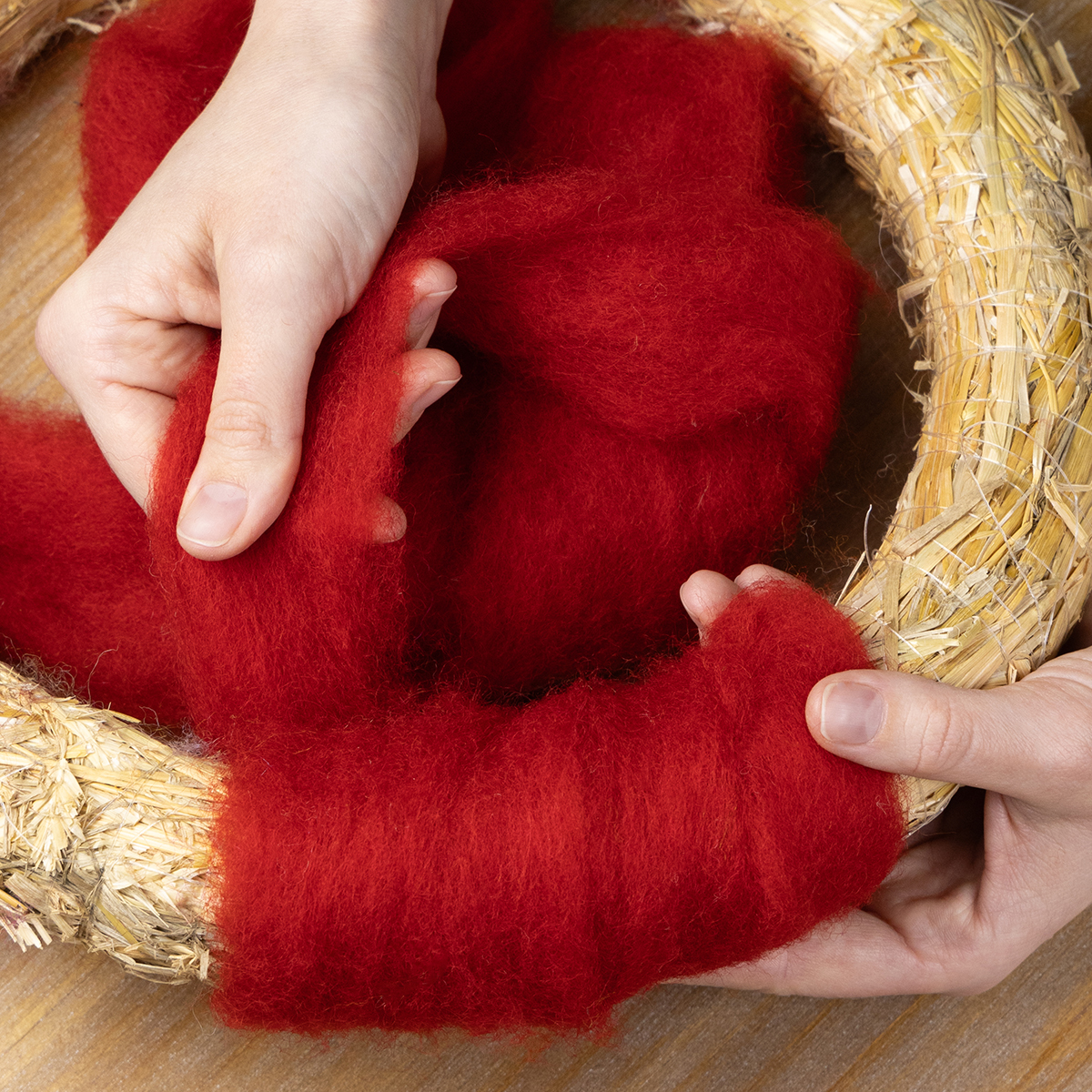 Envie d'une décoration de table originale ? Enveloppez simplement vos verres ou vases de laine feutrée pour une touche chaleureuse. Besoin d'un nouveau look pour votre couronne ? Recouvrez une base de couronne simple de cette laine rouge et admirez son allure instantanément plus dynamique et élégante ! La laine est également idéale pour l'art floral : utilisez-la comme base pour vos compositions florales ou petits centres de table afin de leur donner plus de volume et d'élégance.