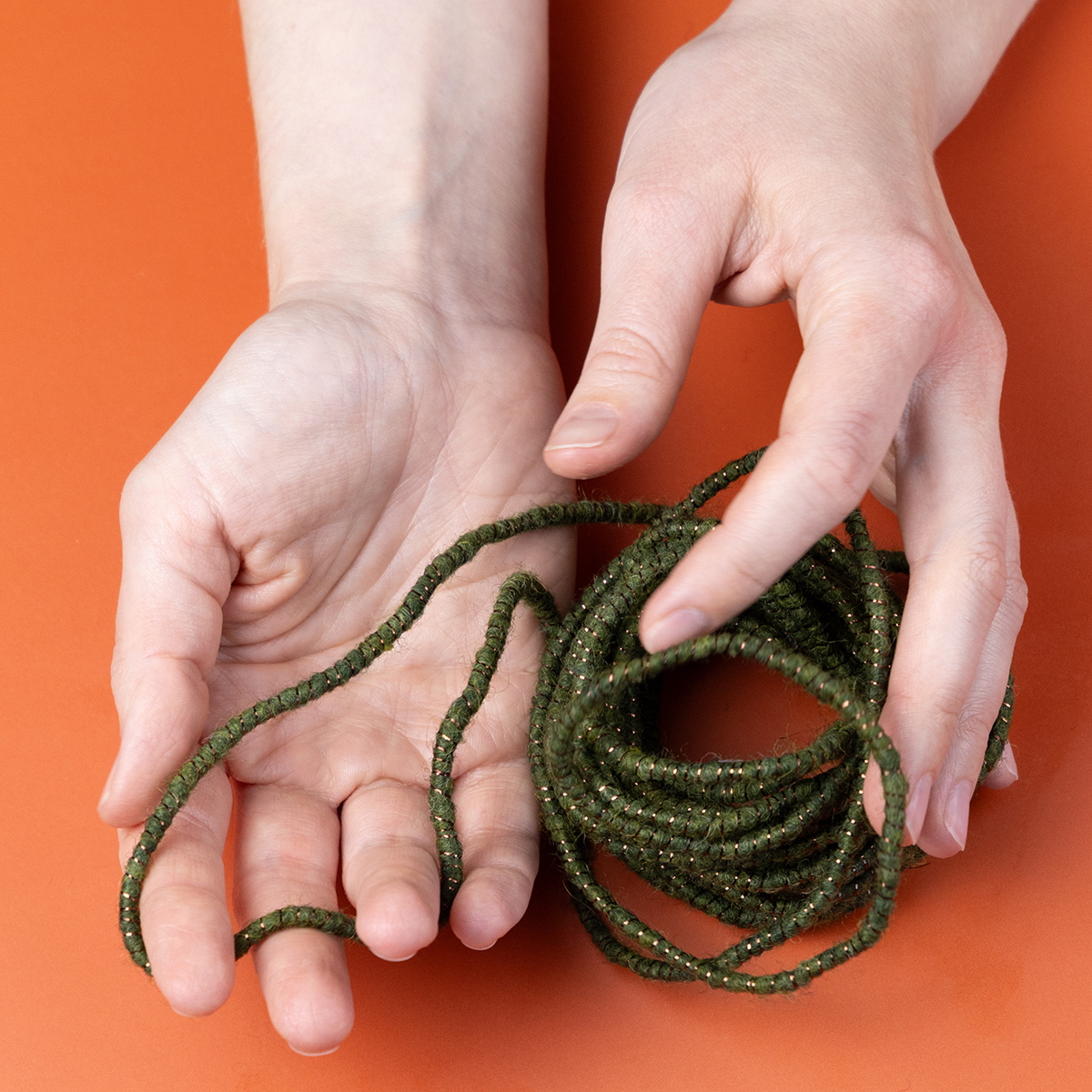 Vous recherchez un cordon décoratif élégant et polyvalent pour sublimer vos créations et décorations ? Notre cordon en laine verte avec fil doré est fait pour vous ! La douceur de la laine, la finesse du lurex et la souplesse du fil métallique en font un accessoire indispensable pour les esprits créatifs. Que ce soit pour l'art floral, la décoration de cadeaux ou la confection de couronnes de l'Avent, ce cordon apporte couleur, élégance et texture à toutes vos créations. Avec une longueur de 5 mètres et un diamètre de 5 millimètres, vous disposez de tout le nécessaire pour laisser libre cours à votre imagination.