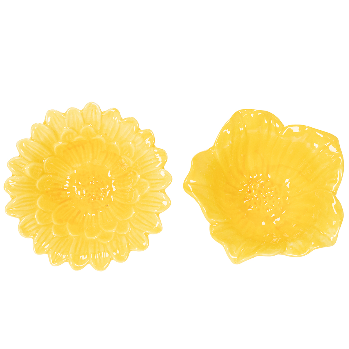 Wer liebt es nicht, mit kleinen Details dem eigenen Zuhause eine ganz persönliche Note zu geben? Diese dekorativen gelben Keramik-Blumen als kleine Schalen sind genau das richtige Accessoire, um im Handumdrehen frische Farbakzente zu setzen und Ihre Wohnung stilvoll zu gestalten. Mit ihrem charmanten Blüten-Design in kräftigem Gelb und der hochwertigen Keramik bringen sie modernes Flair direkt zu Ihnen nach Hause. Perfekt für kreative Blumendekorationen, eine schöne Geschenkidee oder um einfach kleine Dinge dekorativ in Szene zu setzen. Aber Vorsicht: Diese kleinen Eyecatcher sind nicht für den Kontakt mit Lebensmitteln geeignet. Stellen Sie sich die Schalen mit Trockenblumen, als Teelichthalter oder als Accessoire für die Frühlingsdeko in Ihrem Wohnzimmer vor – sie ziehen garantiert alle Blicke auf sich!