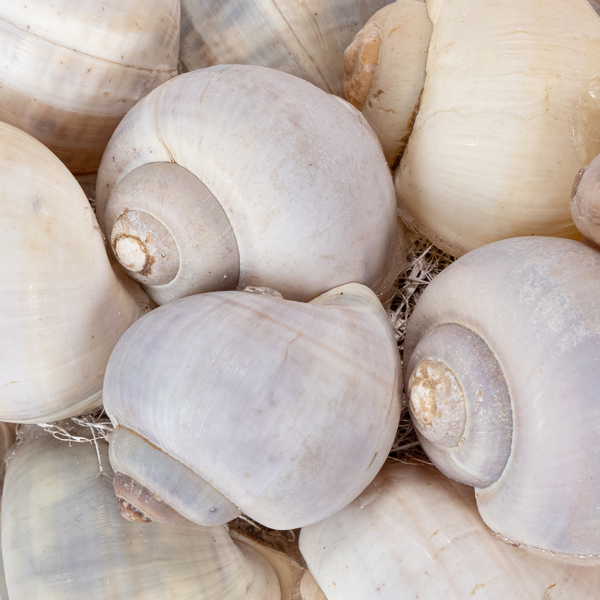 Matériel: escargots de mer, polystyrène, sisal, ficelle