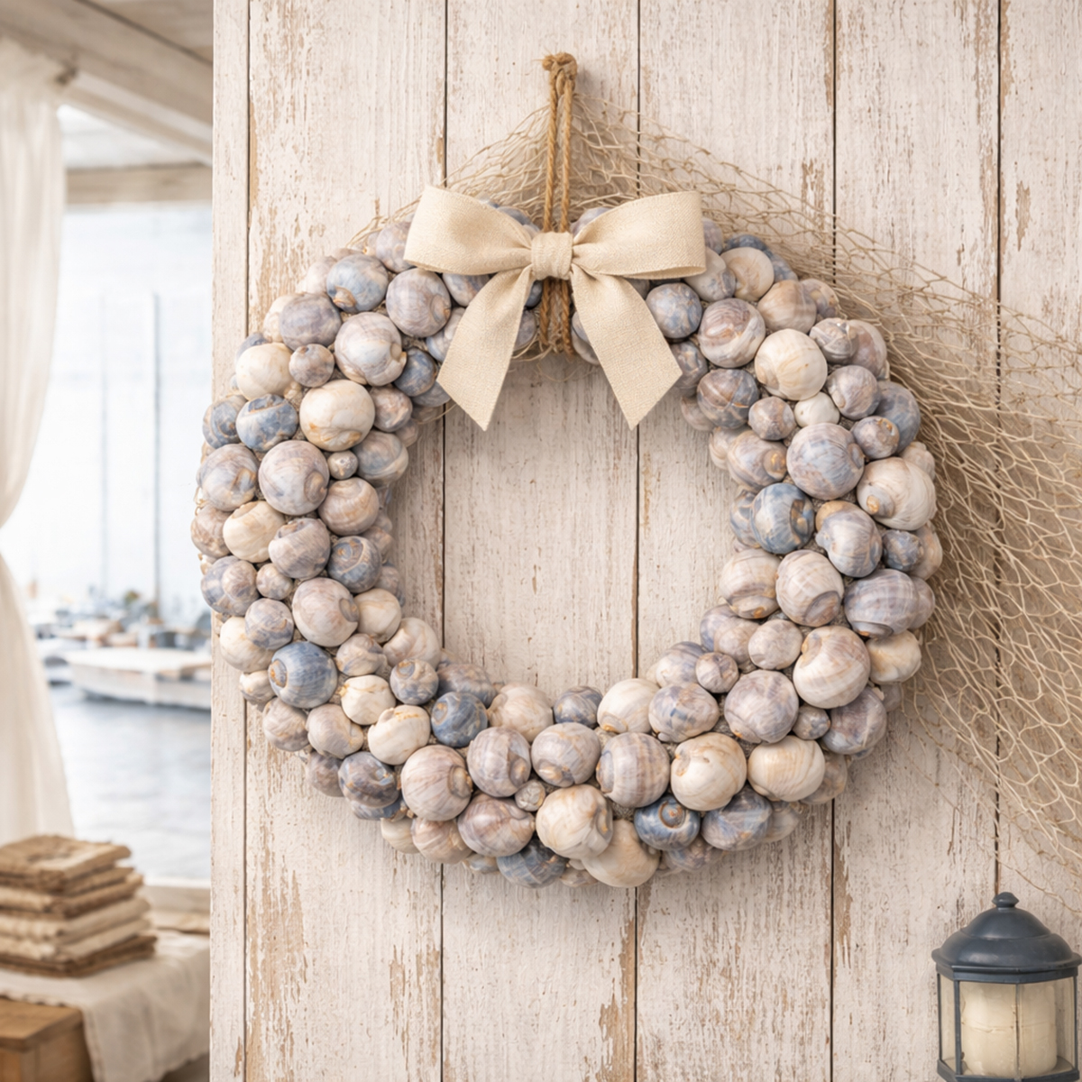 Couronne d'escargots à suspendre, couronne décorative, style marin, Nathai, Ø35cm