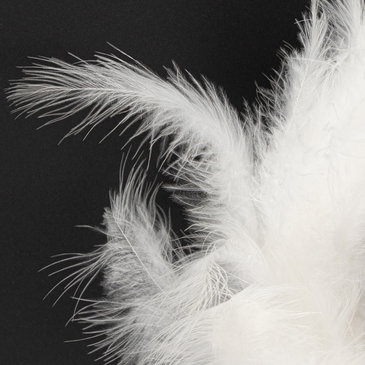- Materiaal: hoogwaardige veren, vederlicht en verfijnd.