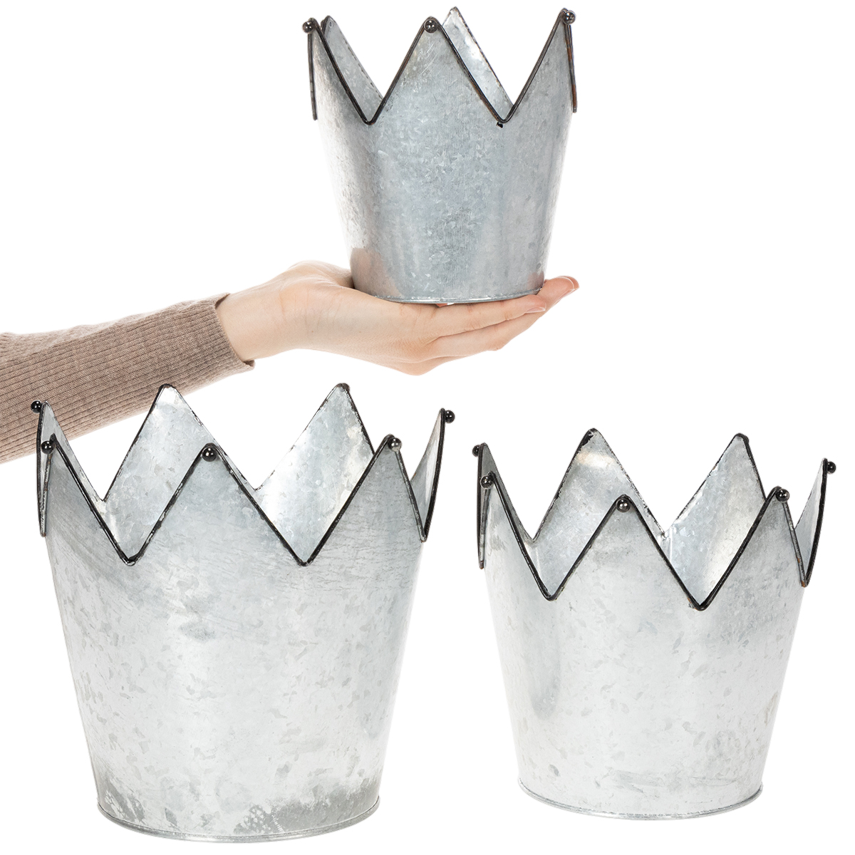 Sublimez vos appuis de fenêtre et vos commodes avec ces trois jardinières en forme de couronne ! Les couronnes décoratives sont en métal, plus précisément en zinc.