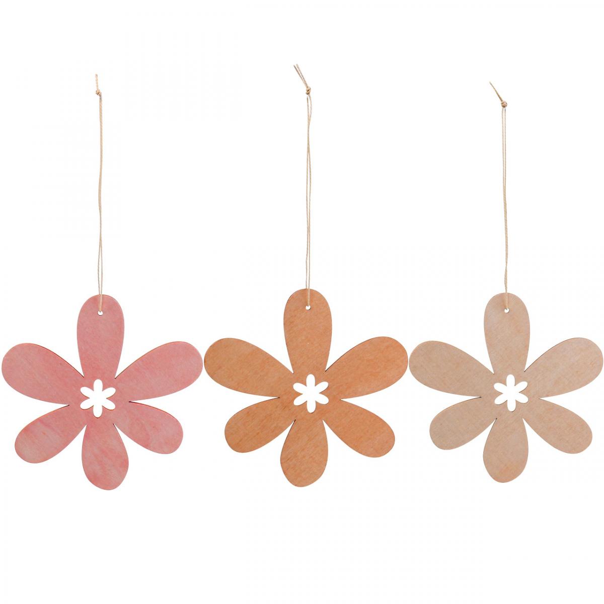 Déco fleur pendentif en bois fleur en bois orange/rose/jaune 12 pièces