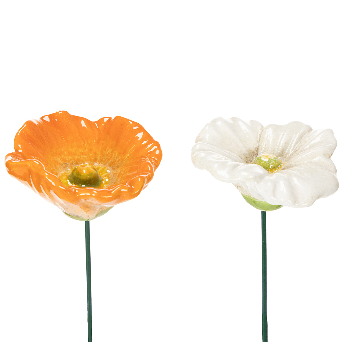 Verlangt u naar een frisse wind en een vleugje lente in uw tuin? Dan zijn deze betoverende, klaproosvormige tuinstekers precies wat u zoekt! Of u ze nu tussen kleurrijke bloembedden, in de kruidentuin of als blikvanger in plantenbakken plaatst, de keramische klaproos straalt pure lentevreugde uit in oranje en wit. Waardeert u met zorg vervaardigde details? Dan zijn deze hoogwaardige keramische tuinstekers perfect voor u. Hun levendige kleuren en fijne afwerking maken ze tot een echte blikvanger. Steek ze eenvoudig in de grond en creëer een onweerstaanbare sfeer die uw tuin tot uw favoriete plekje zal maken!