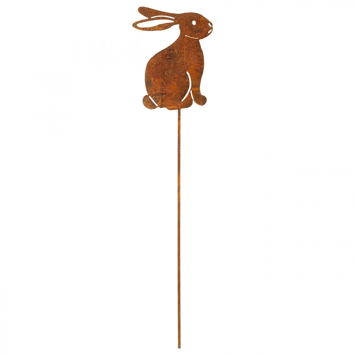 Nom du produit : Décoration de jardin, lapin de Pâques rouillé, piquet à fleurs, métal, 7 × 9 cm, lot de 6
