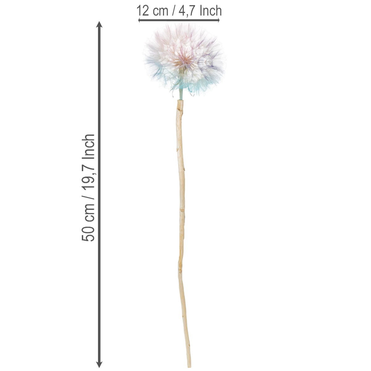 Décoration pissenlit, fleur séchée, stabilisée et teintée, délicate et résistante, 12 cm, lot de 4.