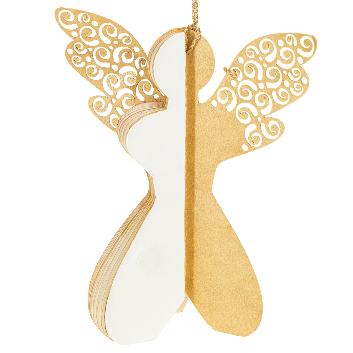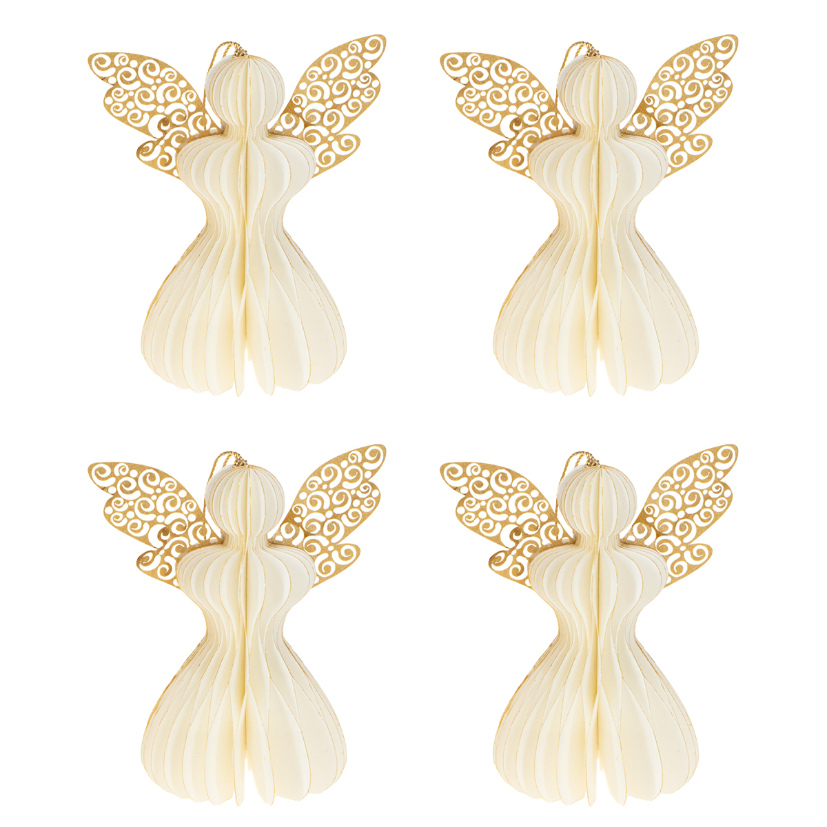Papieren engelenboomornamenten, engelhangers, wit en goud, 12 cm, 4 stuks